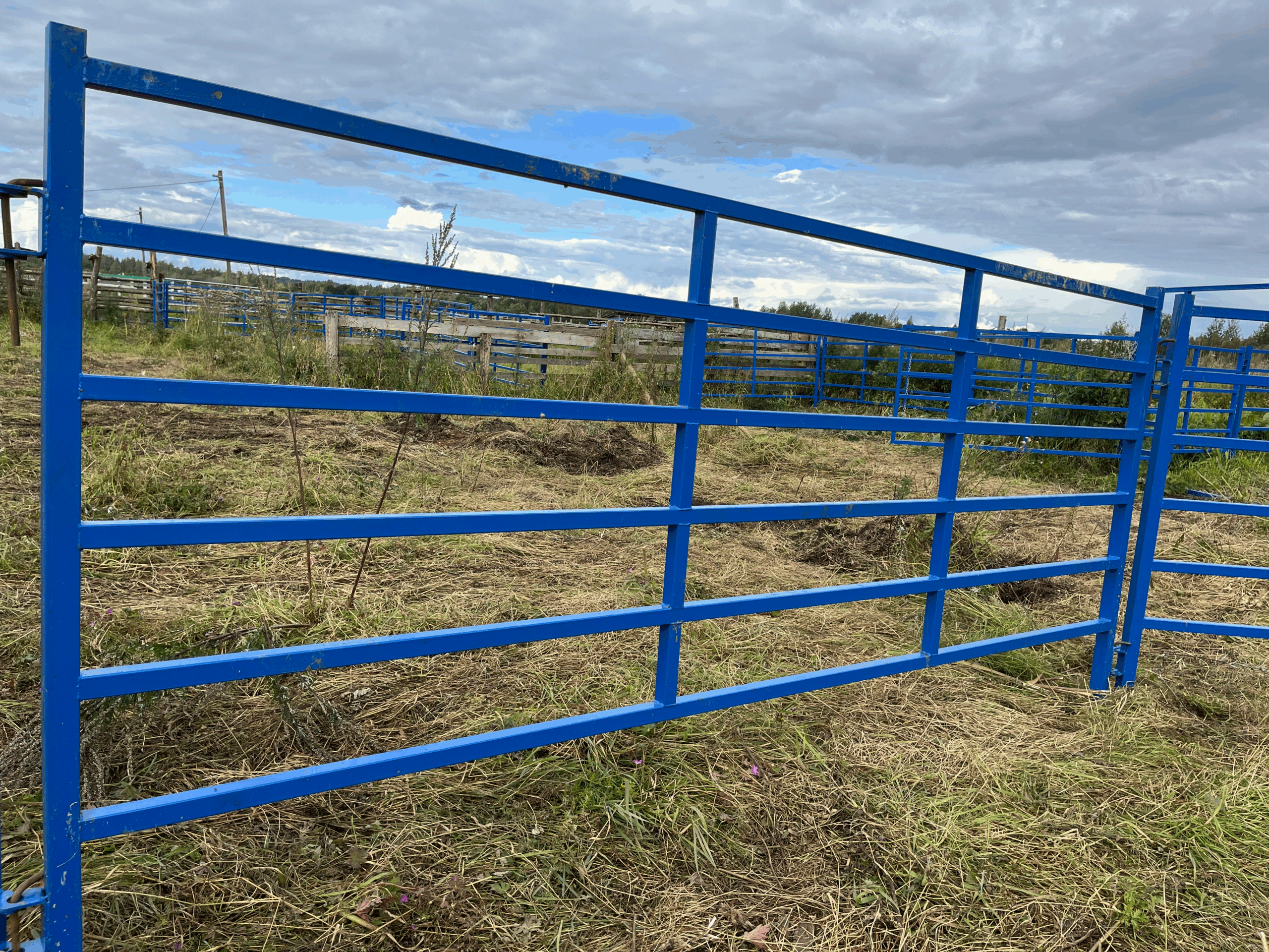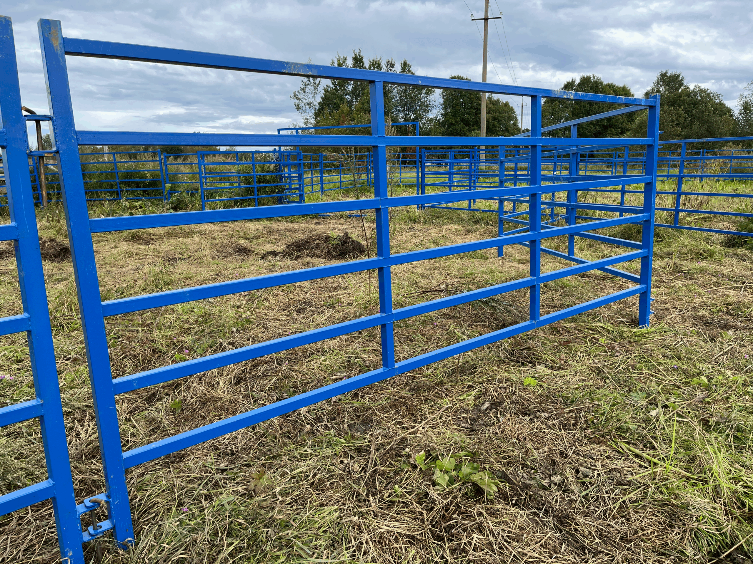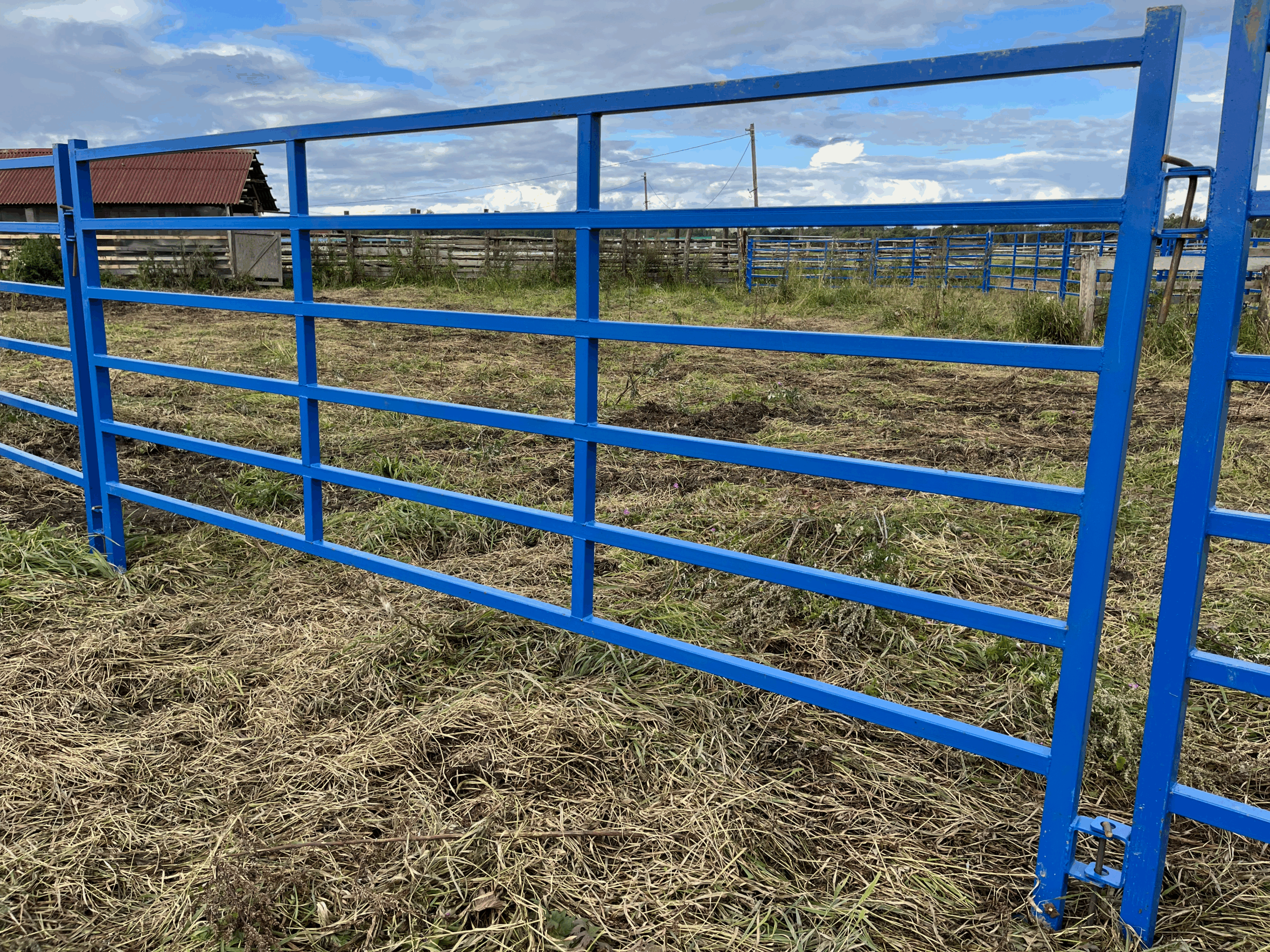 «Рабочая лошадка» панельного загона: понятная геометрия, доступный прокат, удобная сварка. В проекте заложены стойки из 50×50×2, горизонтали из 40×40×2, усиливающие пластины 6 мм и заглушки 50×50. В чертежах указаны сборочные размеры и технологические примечания (включая требование: «сварной шов между труб — делать по кругу»).