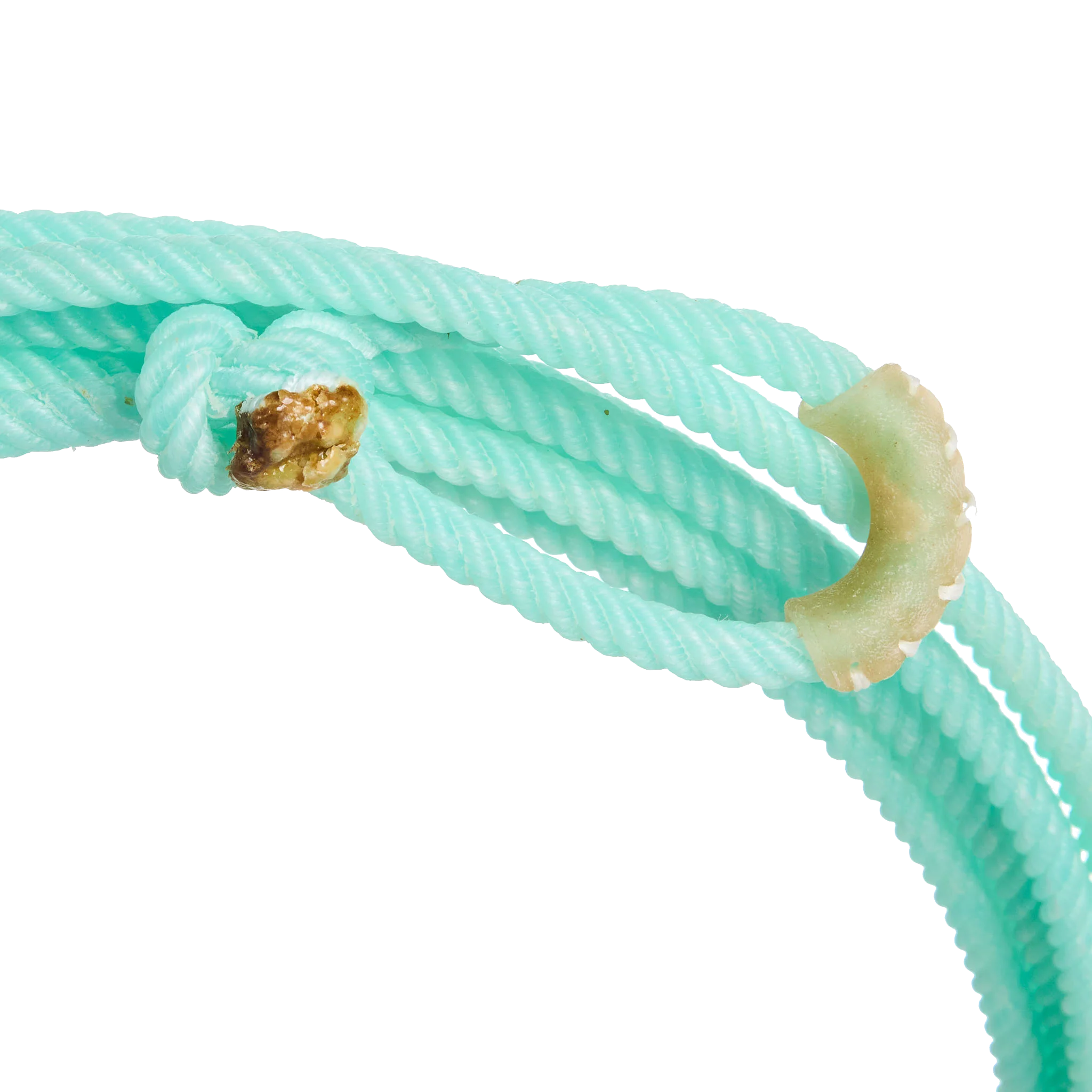 • Смесь полиэстера и нейлона снаружи. Четыре пряди скрученной синтетической нити образуют «тело» петли с выраженным объёмом и широкой геометрией, при этом оболочка остаётся достаточно лёгкой.